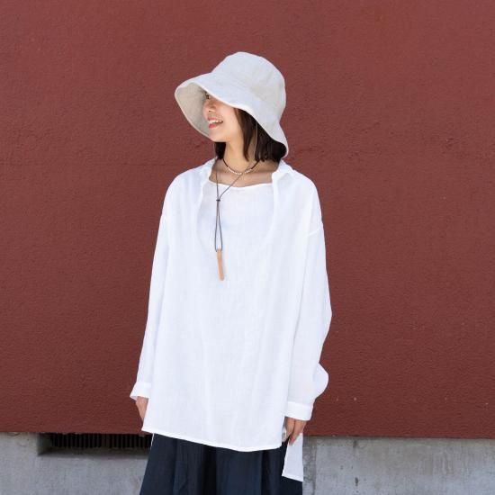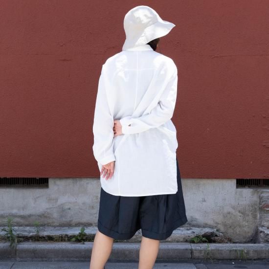 台襟付きシャツカラー・ドロップショルダー仕様。