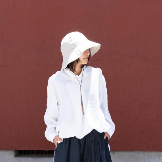 質感を出しています。とてもシワになりにくく、薄く軽い生地感です。