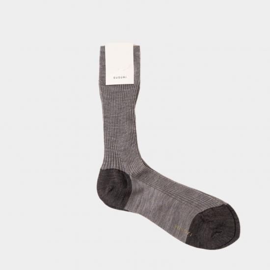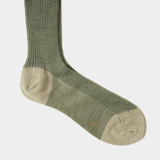 細番⼿のウールを裏でポリエステルとナイロンで⽀えた構造のカラーブロッキングのアイテム。