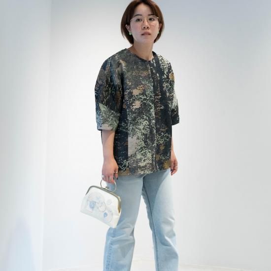 長い季節で着られる5分袖に、ジャカードの重厚感のある生地で、
