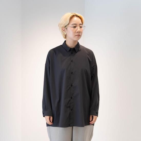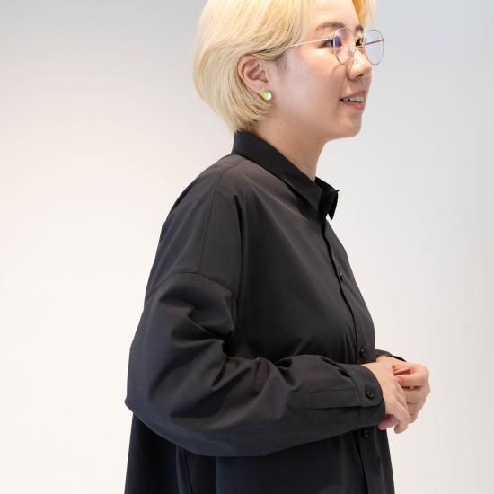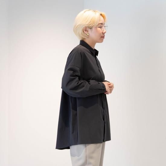 ストレッチポリエステル・マットタイプライター素材 台襟付きシャツカラー NOVSH