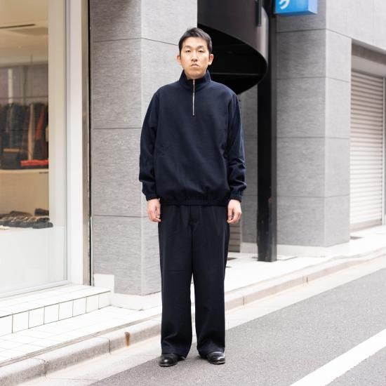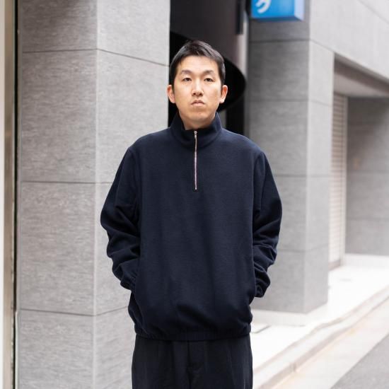 リラックス感のあるシルエットとシームポケット、袖口と裾にゴム、ハーフジップにはエクセラファスナーを使用しています。