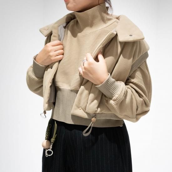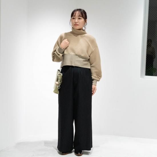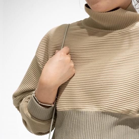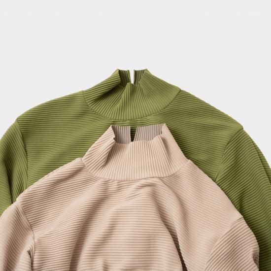 タートルネック部分にはスリットが入っていて締め付け感なく着ていただけます。