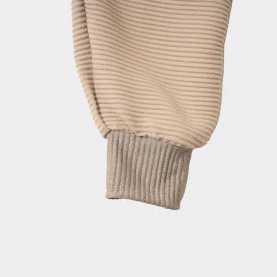 スウェットの様なスポーティーさと休日感のある落とし込みにしています。