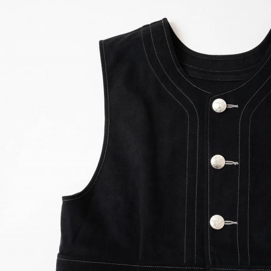 昨年のEmbroidered Vestを上品なスエード調にアップデートしたアイテム。