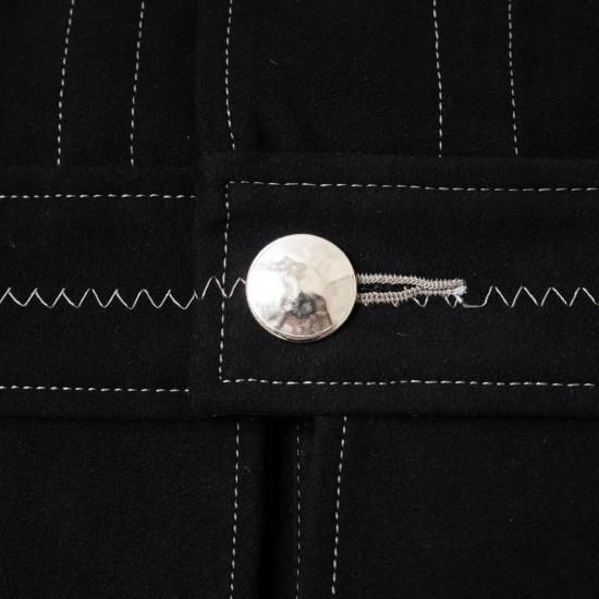 ボタンは1つ1つ型に入れて仕上げた金属ボタンを使用し、アクセサリーいらずのインパクトがあります。