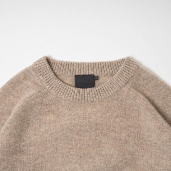 comm.archの秋冬セーターの顔と言っても良いクルーネックタイプ「Hand Framed Saddle B.B.」。