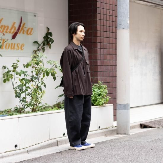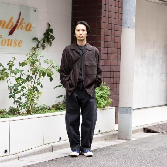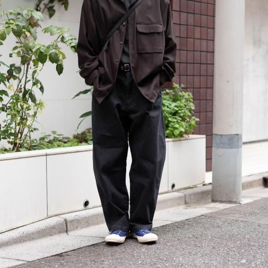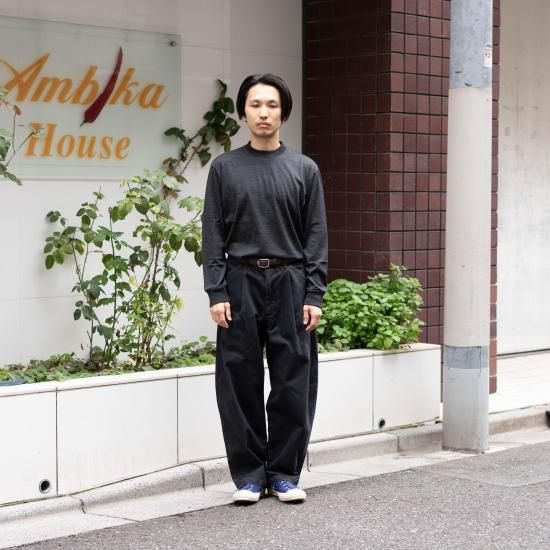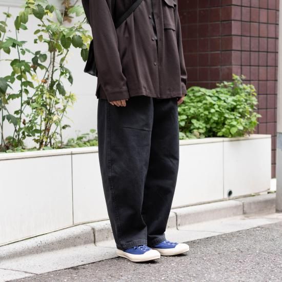 フロントタックがしっかり深いデザインで外脇がカーブしたシルエットのパンツです。