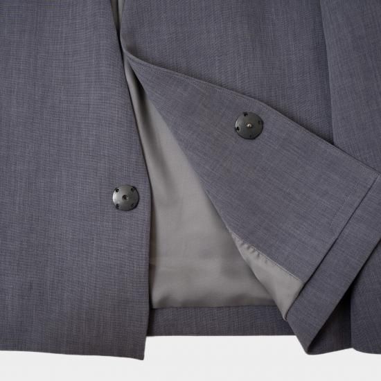ノーカラーで、内側ボタンなのでミニマムでスタイリッシュなアイテム。