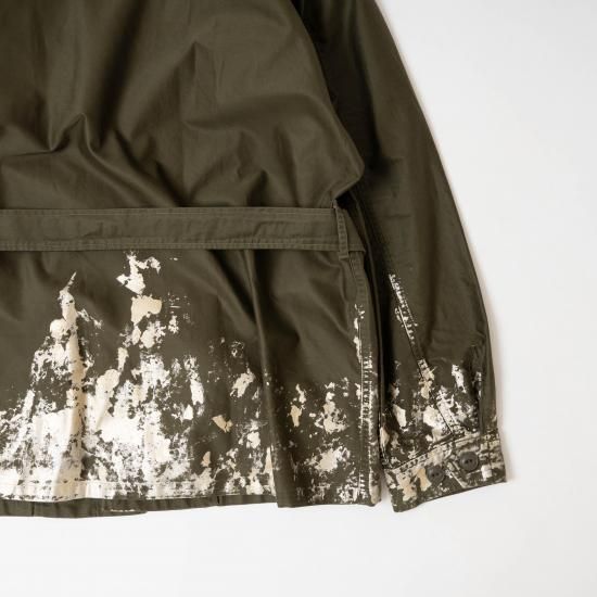 仕上げには、信頼する凄腕の加工工場に依頼し、加工によるミリタリーライクな質感と生地が持つ高級感を共存させた一枚です。