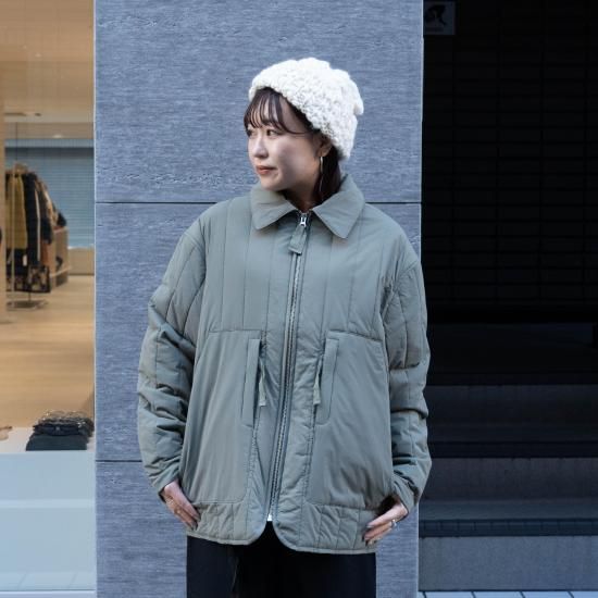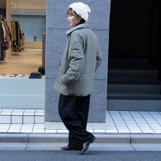 すっきりとしたキルティングシルエットに、立体的な襟や
