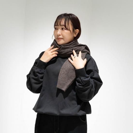 首元にラフに巻きつけてもバランスの取りやすいボリューム感に仕上げています。