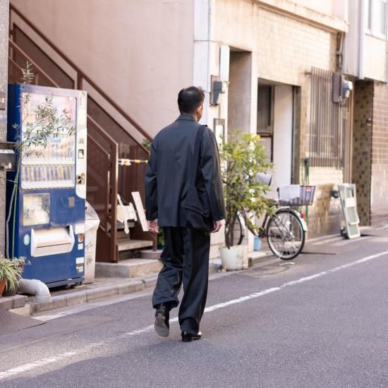 同素材のジャケットと一緒にセットアップでの着用もおすすめです。
